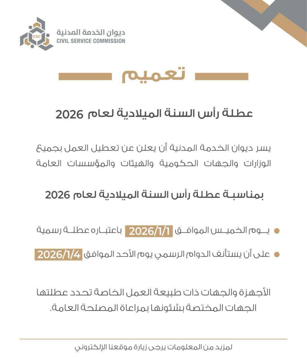 أصدر مجلس الوزراء قرار بشأن عطلة رأس السنة الميلادية لعام 2025، وبناءاً عليه أصدر مجلس الوزراء القرار التالي:
